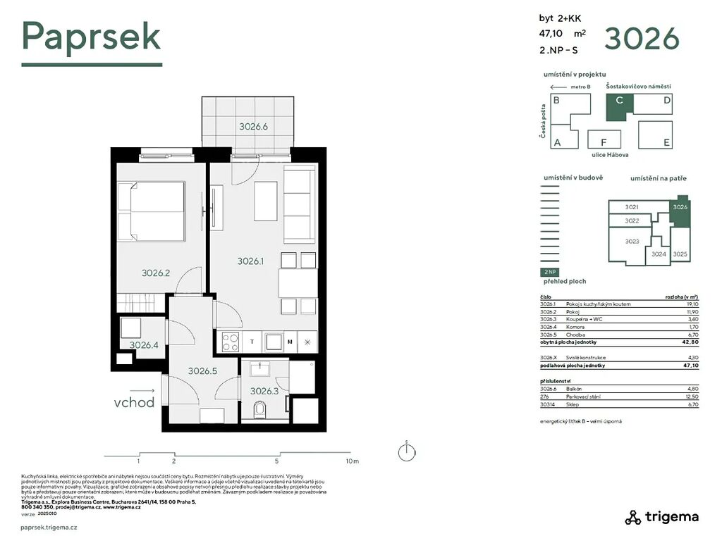 Přímo v objektu najdete obchodní prostory, supermarket Albert, lékárnu, drogérii, kavárnu a další služby. V těsné blízkosti jsou také restaurace, fitness, lékaři, školy, školky i možnosti pro volnočasové aktivity v přírodě – včetně cyklostezek a běžeckých tras. Hlavní benefit tvoří bezprostřední blízkost ke stanici metra Stodůlky. Byt je připraven k nastěhování od 1.11.2025.