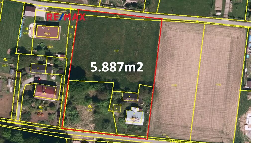 Jedná se o následující pozemky: Parc.č. 1137, s výměrou 996m² - zastavěná plocha a nádvoří, Parc.č. 1138, výměra 1351m² - zahrada, Parc.č. 1141, výměra 3448m² - orná půda, Parc.č. 1143/1, výměra 92m² – ostatní plocha. Inženýrské sétě vedou u hranice pozemku. Pozemky jsou rovinaté, umístěné ve velmi klidné lokalitě, v územním plánu obce jsou vedeny jako stavební: kategorie BI – bydlení individuální. Dle aktuálních podmínek výstavby dle informací poskytnutých stavebním úřadem bude možná výstavba až 4 dalších rodinných domů.