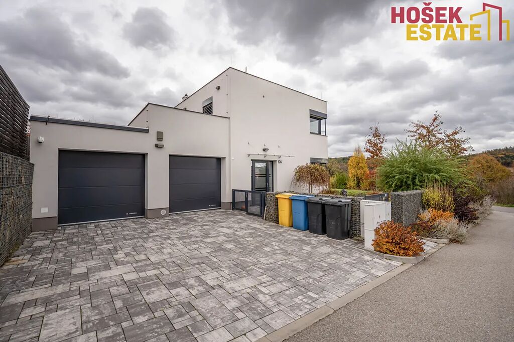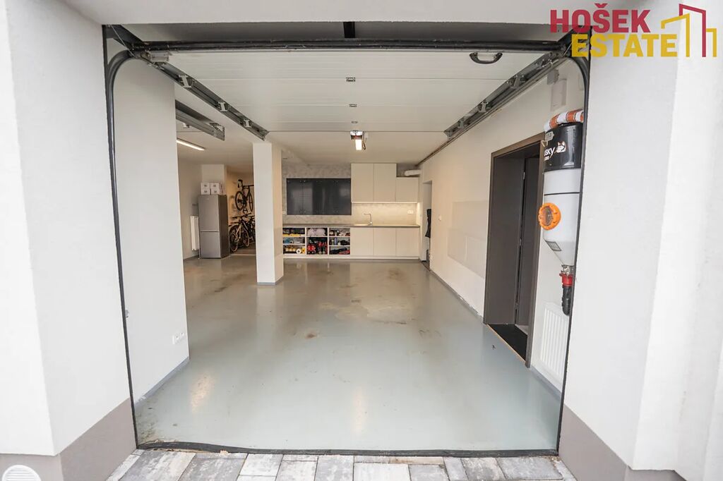 Velkou výhodou je prostorná a praktická garáž na dvě auta. Do garáže je vstup přímo z domu suchou nohou a z ní také vstup přímo na zahradu.