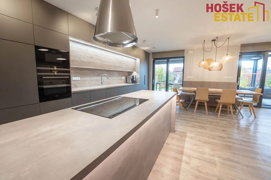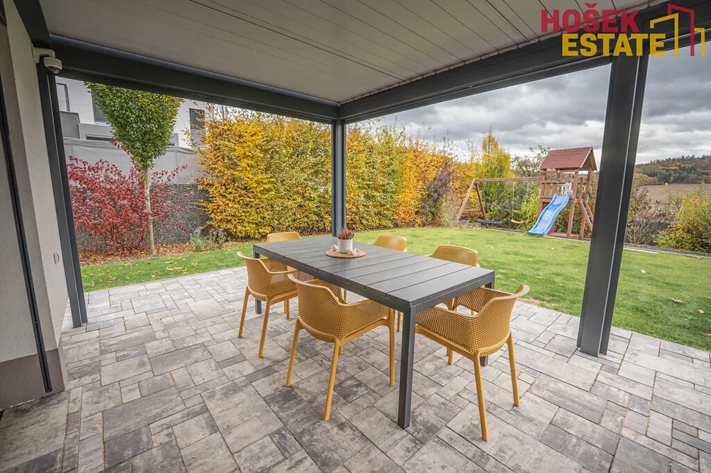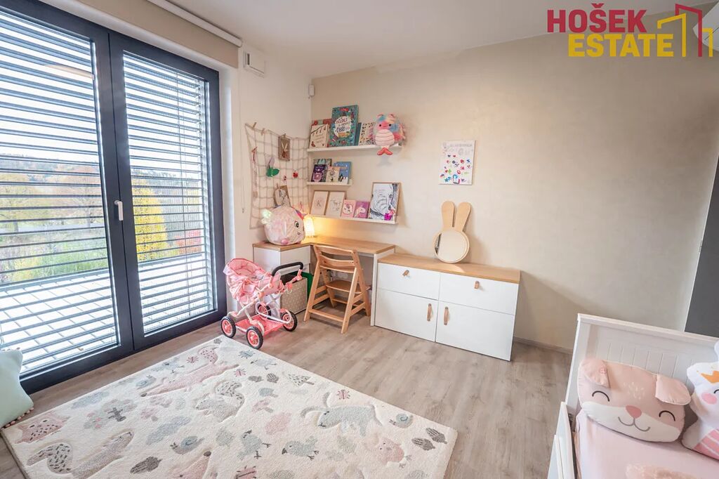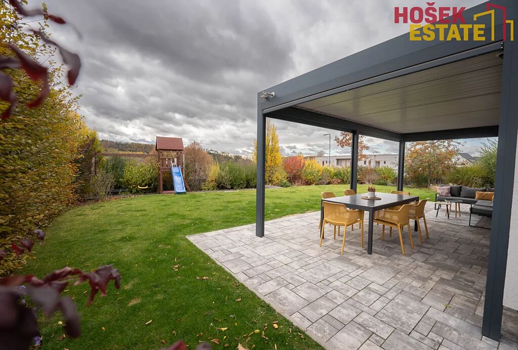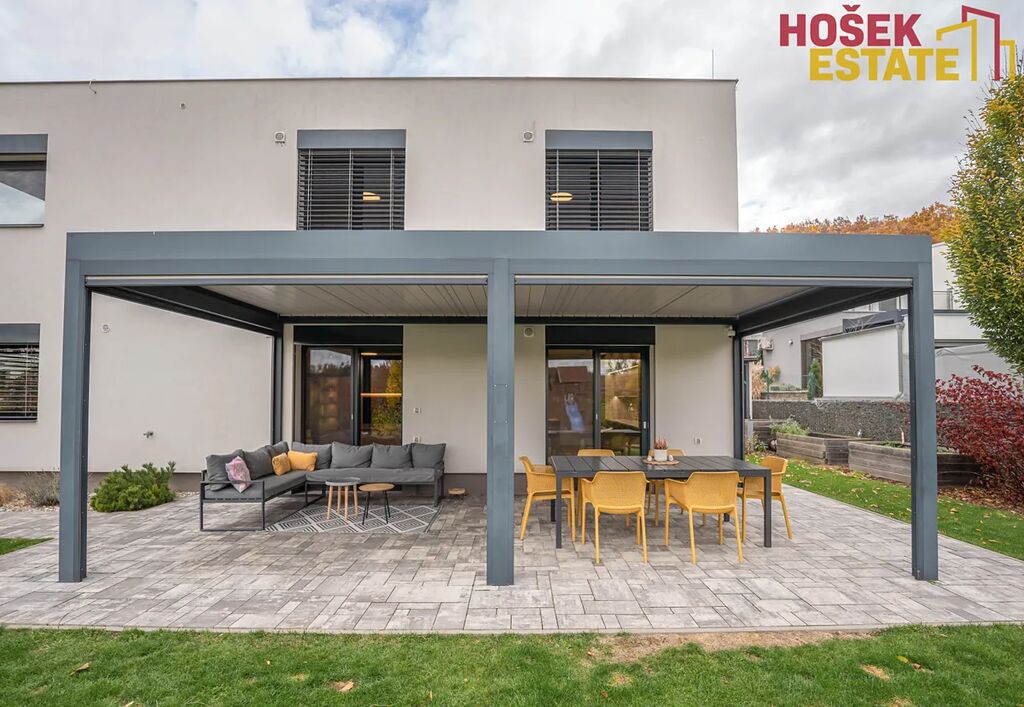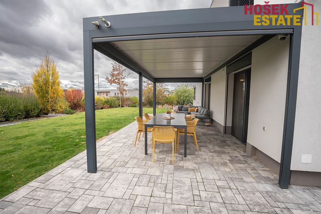 Novostavba je z roku 2019, což Vám zaručuje minimální starosti s údržbou a maximální pohodu pro rodiny. V domě se nachází prostorná a prakticky uspořádaná plně vybavená kvalitní kuchyň a prostorný moderní obývací prostor. Dále praktická technická místnost, kde je uložena pračka se sušičkou. Dětské pokoje jsou vybaveny dostatečným úložným prostorem pro všechny hračky a potřeby vašich ratolestí a také klimatizačními jednotkami. Prostorná ložnice má dokonce svou vlastní koupelnu, což jistě oceníte. Dalším plusem je krásná terasa v prvním patře, která přímo vybízí k domácímu wellness. Venkovní zahrada je hezky udržovaná a nabízí prostor pro hry, odpočinek a rodinné sešlosti pod kvalitní bioklimatickou podsvícenou pergolou se screeny po všech stranách.