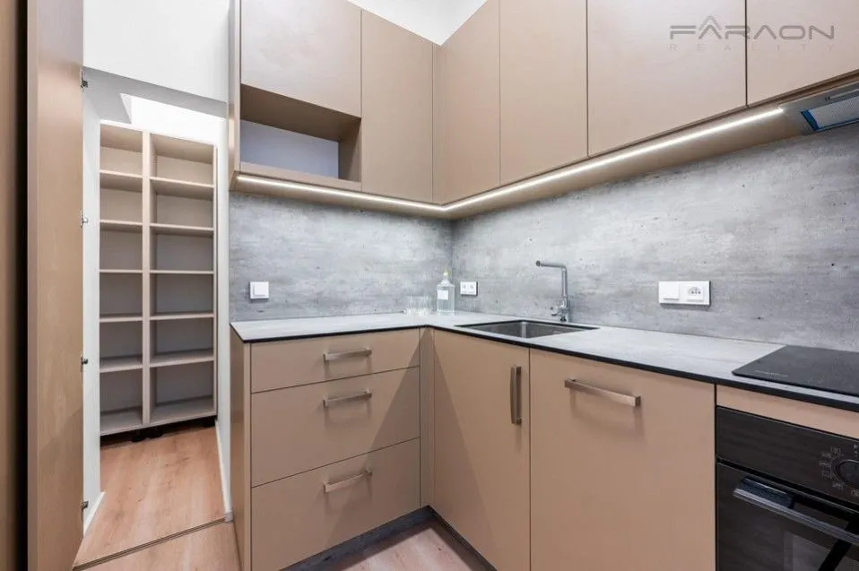 Vybavení bytu zahrnuje plně vybavenou kuchyňskou linku s elektrickou troubou a indukční deskou, myčkou a vestavěnou lednicí, v kuchyni se nachází samostatná spižírna s policemi. Podlaha je na chodbě a v pokojích vinylová, v kuchyni a v koupelně jsou keramické dlaždice. Z obývacího pokoje je výhled do klidného vnitrobloku na společnou terasu. Protože se jedná o byt ve sníženém podlaží, okna v ložnicích jsou vybavena speciálním systémem umělého osvětlení imitujícím denní světlo, přísun čerstvého a čistého vzduchu zajišťuje rekuperace, v jedné ložnici se také nachází vestavěná skříň vytvořená na míru. K dispozici je sklep v podzemí domu.