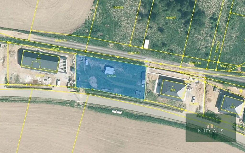 Pozemek je kompletně zasíťovaný, oplocený, s vybudovanou příjezdovou cestou a retenční nádrží.