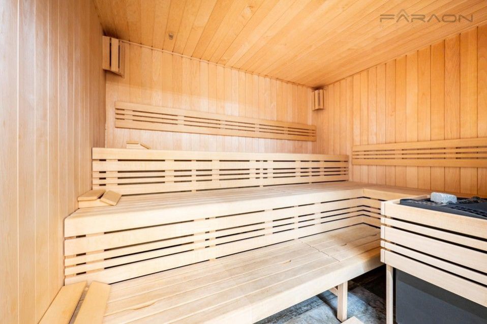 Kompletní vybavení dle fotodokumentace - kuchyňská linka vybavená zcela novými kvalitními spotřebiči, dubová podlaha, jídelní stůl, židle, sofa, TV, velkorysá, velkoformátová dřevěná okna s izolačními trojskly, elegantní dveře, moderní koupelny s velkoformátovými obklady a keramickou matnou dlažbou a nábytkem na míru, dřevěné plné, bezfalcové dveře, jednokřídlé bezpečnostní vstupní dveře, rekuperace, ovládání domácnosti přes LCD panel, kamerový zabezpečovací systém napojený na recepci objektu, bytový videotelefon.