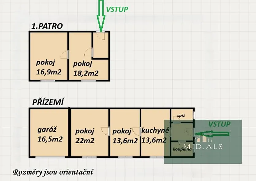 Stavení je určeno k rekonstrukci a můžete si ho přetvořit podle svých představ. V přízemí najdete dvě obytné místnosti, kuchyni, koupelnu a spíž. V přístavbě jsou další dvě místnosti, přístupné po venkovním schodišti. Přízemí přístavby slouží jako garáž.