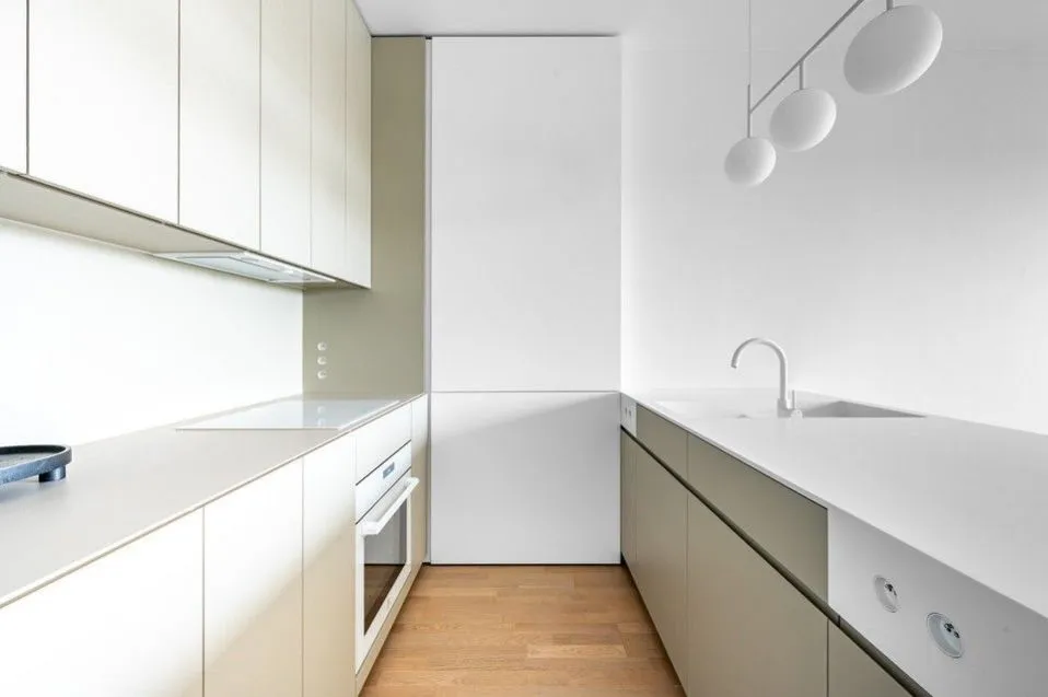 Dispozice bytu 2+kk zahrnuje otevřený prostor obývacího pokoje s kuchyní, jídelním prostorem a obývací částí (s přímým výstupem na terasu s výhledy), oddělenou od ložnice posuvnými dveřmi, ložnice s přímým vstupem na terasu s posezením a krásnými výhledy na řeku. Dále prostorná, průchozí šatna s navazujícím vstupem do koupelny se sprchovým koutem, vanou, závěsná toaleta. Vstupní hala se zabudovanými šatními skříněmi.