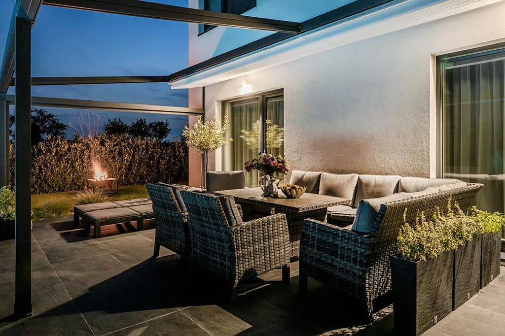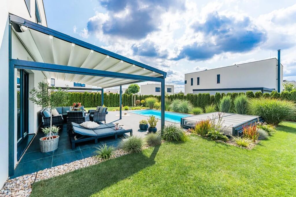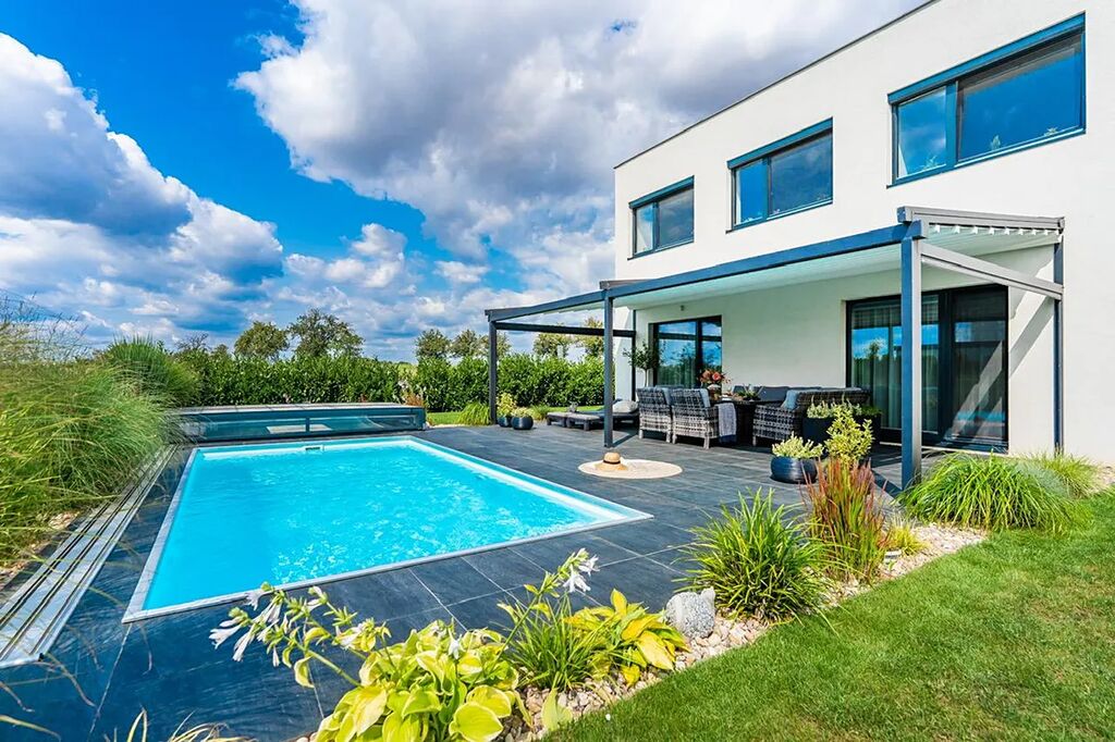 . Dům je dvoupodlažní, zděný, plně zařízený. Dům je vytápěn kondenzačním plynovým kotlem Baxi s integrovaným zásobníkem vody, podlahy jsou třívrstvé dřevěné Ecowood, okna dřevěná s trojskly a vnitřními žaluziemi, v horním patře na oknech venkovní rolety. Dům je vybaven nábytkem v obývacím pokoji sedací souprava Natuzzi, kuchyňský kout s kuchyňskou linkou včetně vestavných spotřebičů, jídelní stůl s židlemi, prostorné vestavné skříně v hale i v patře. V dětském pokoji a chodbě ve 2NP instalována klimatizace Bosch. Dům obklopuje udržovaná zahrada 629m2, vhodná k odpočinku či grilování s přáteli. K příjemnému venkovnímu posezení vybízí terasa vybavená venkovním nábytkem, krytá hliníkovou pergolou SUNTECH 8x4m odolná větru i dešti se zatahovací střechou a boční stínící technikou zipscreen, díky které si užijete léto naplno. Pro sport i relax slouží bazén 6x3 m se slanou vodou, který je vyhříván téměř po celý rok invertorovým čerpadlem Rapid Inverter ric20 8,5Kw s chlazením. Soukromí domu i zahrady zajištuje udržovaný, vzrostlý živý plot.