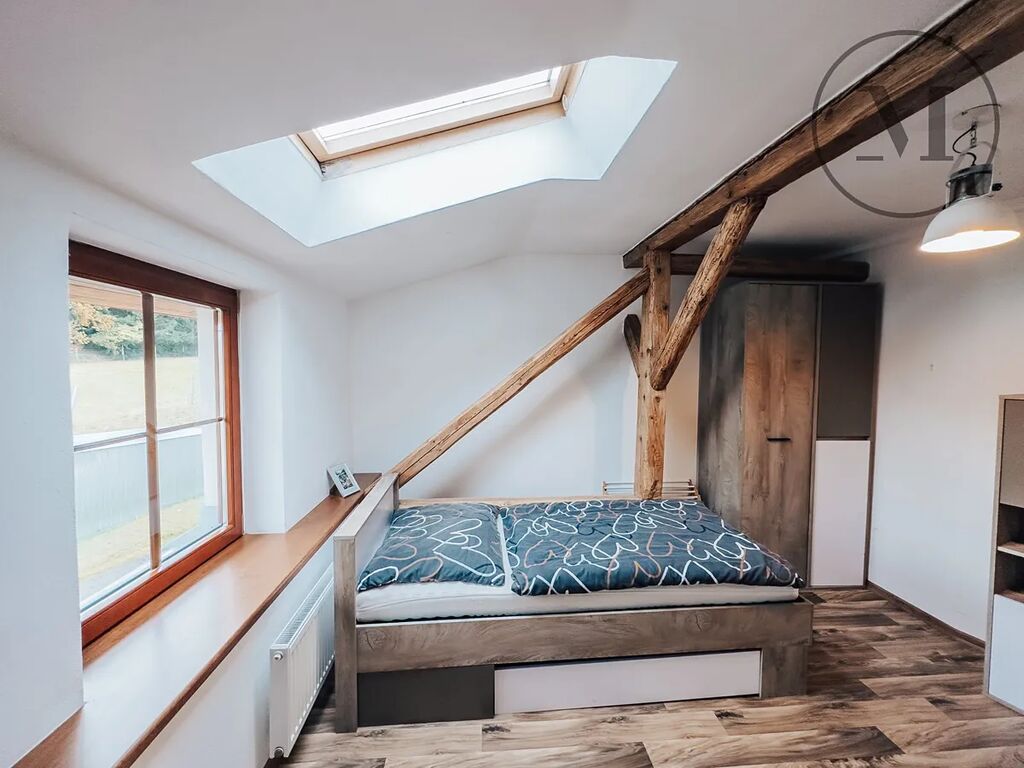 Samotný dům vznikl rozdělením původní chalupy na 2 části. Následné spojením původní zděné chalupy s citlivě navrženou dřevěnou přístavbou. Kombinuje tak kouzlo tradiční architektury s moderním stylem a velkorysým prostorem. V horním patře vás zaujme útulný obývací pokoj s krbovými kamny a nádherným výhledem do okolní krajiny.