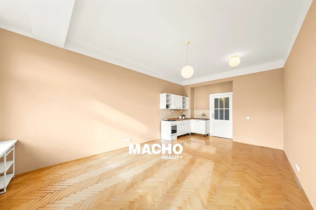Byt má krásné parkety, vysoké stropy a je vytápěn vlastním plynovým kotlem (ohřev vody i topení).
