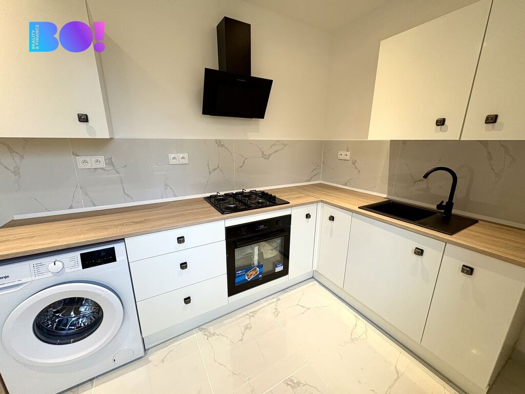 Byt po kompletní rekonstrukci nabízí moderní, útulný a světlý domov. Nová kuchyň je vybavena spotřebiči – plynovou varnou deskou, digestoří, elektrickou troubou a pračkou.
