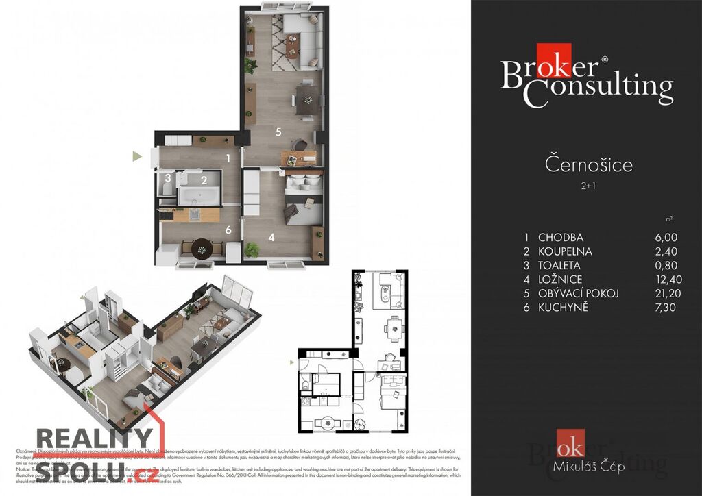 Praktický byt 2+1 o ploše 51,5 m² se nachází ve 2. patře menšího bytového domu v samotném centru Černošic – pár minut chůze od vlaku i kompletní občanské vybavenosti.