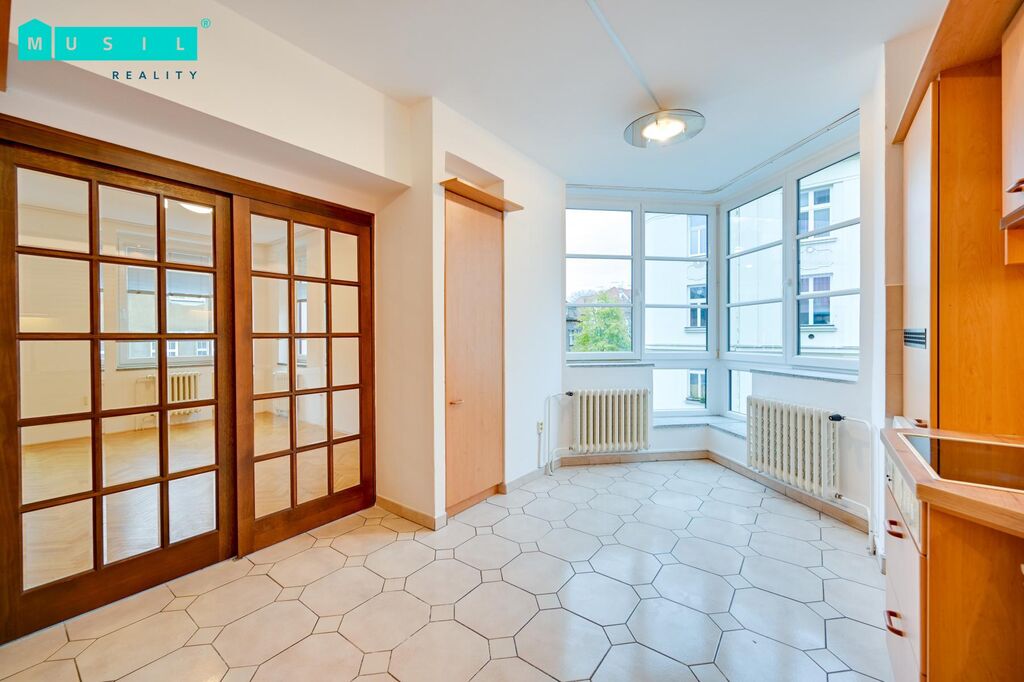 Pronájem krásného, slunného, reprezentativního bytu o dispozici 3+1 na ulici Bezručova v centru města Olomouce. Byt se nachází ve 3. patře cihlového domu s výtahem a má výměru 89 m2. Nemovitost se skládá ze samostatné kuchyně, prostorného obývacího pokoje a dvou ložnic. Z obývacího pokoje je vstup na balkón, který nabídne místo pro odpočinek u šálku dobré kávy. V bytě se nachází také prostorná šatna, která nabídka společně s vestavěnými skříněmi dostatek úložných prostor. Luxusní prostorná koupelna je vybavena sprchovým koutem, vanou a velkým umyvadlem. Vytápění nemovitosti je vlastním plynovým kotlem. Nadstandardní a moderní provedení celého bytu. Ideální lokalita v těsném sousedství rekreační zóny městských parků, avšak téměř v samotném historickém centru města. Bezproblémové parkování v suterénu domu za příplatek 1000 Kč/měsíc. Plyn a elektřina přepisem na nájemníky. Kauce vybírána ve výši dvou měsíčních nájmů, provize RK jeden měsíční nájem + DPH, Doporučujeme prohlídku. Cena: 19.900,- Kč/měsíc + 1200 energie (voda, výtah, úklid společných prostor a garáže) + 1.000 Kč/garážové stání.
