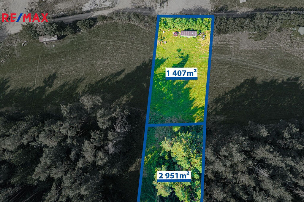 Nasajte atmosféru, kterou nabízí luční pozemek o výměře 1407 m2, spolu s lesním pozemkem o 2951 m2. Tedy celkem 4358 m2 oázy klidu.