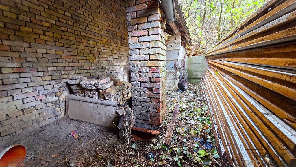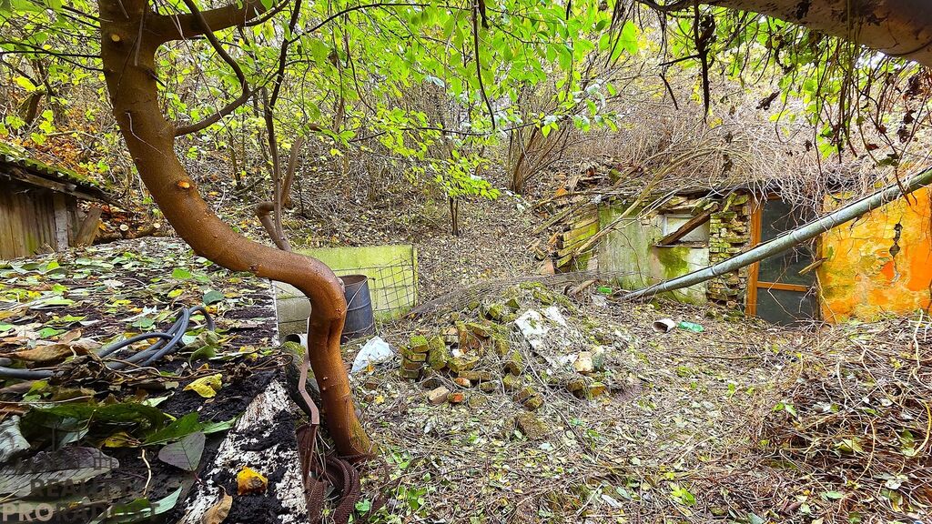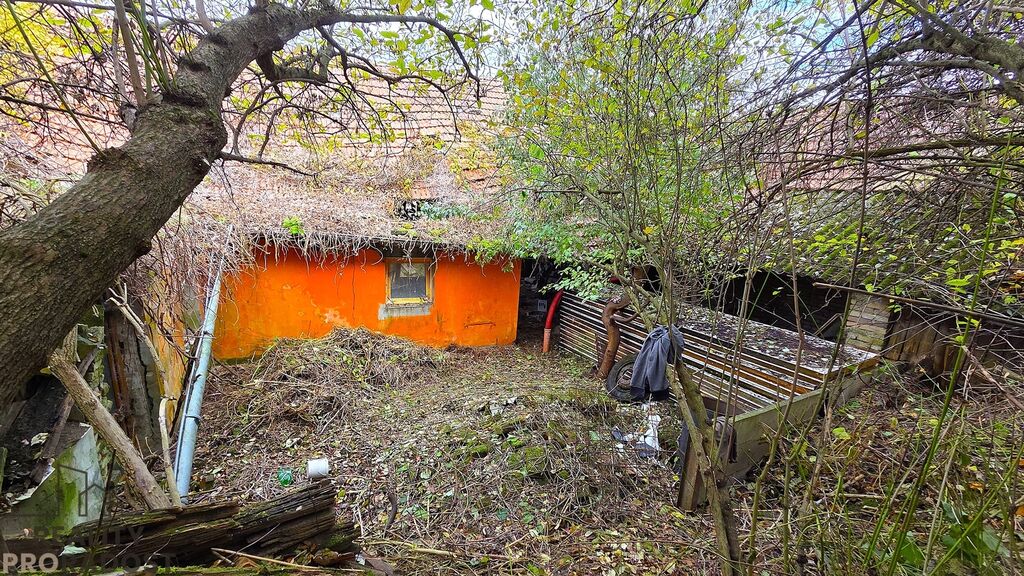 Zahrada je svažitá, prostorná a s velkým potenciálem. Po letech bez údržby je aktuálně zarostlá náletovými dřevinami.