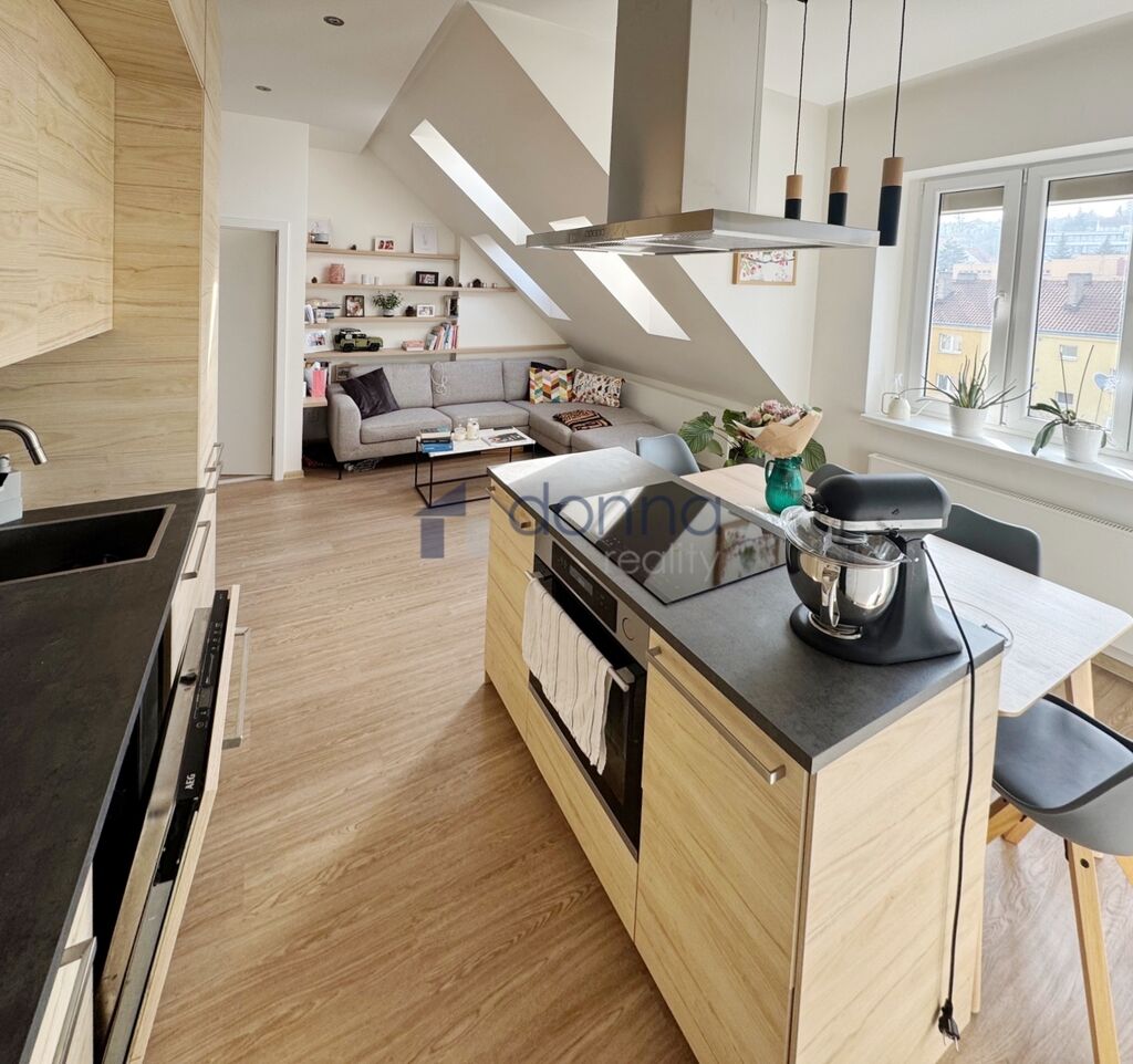 Nabízíme k pronájmu částečně podkrovní byt 2+kk o velikosti 47 m² v atraktivní lokalitě Prahy 4 - Podolí, Jeremenkova ulice, u zastávky Dvorce. Byt je velmi světlý díky velkým oknům a je vybaven ve vysokém standardu: