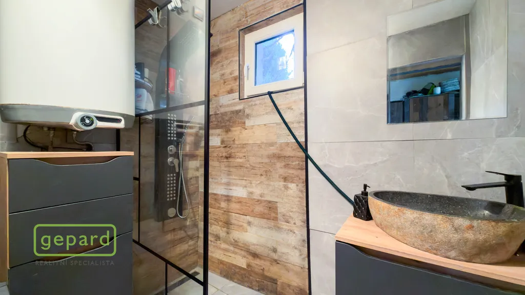 Přízemí – vstup do domu přes přistavěné zádveří, ze kterého vstoupíte do koupelny (sprchový kout, umyvadlo a bojler) nebo do samostatného WC, následuje chodba, kde je umístěn kotel a ze které také vede schodiště na půdu, následuje postupně kuchyně, obývací pokoj, posilovna a 2 ložnice.