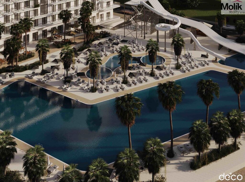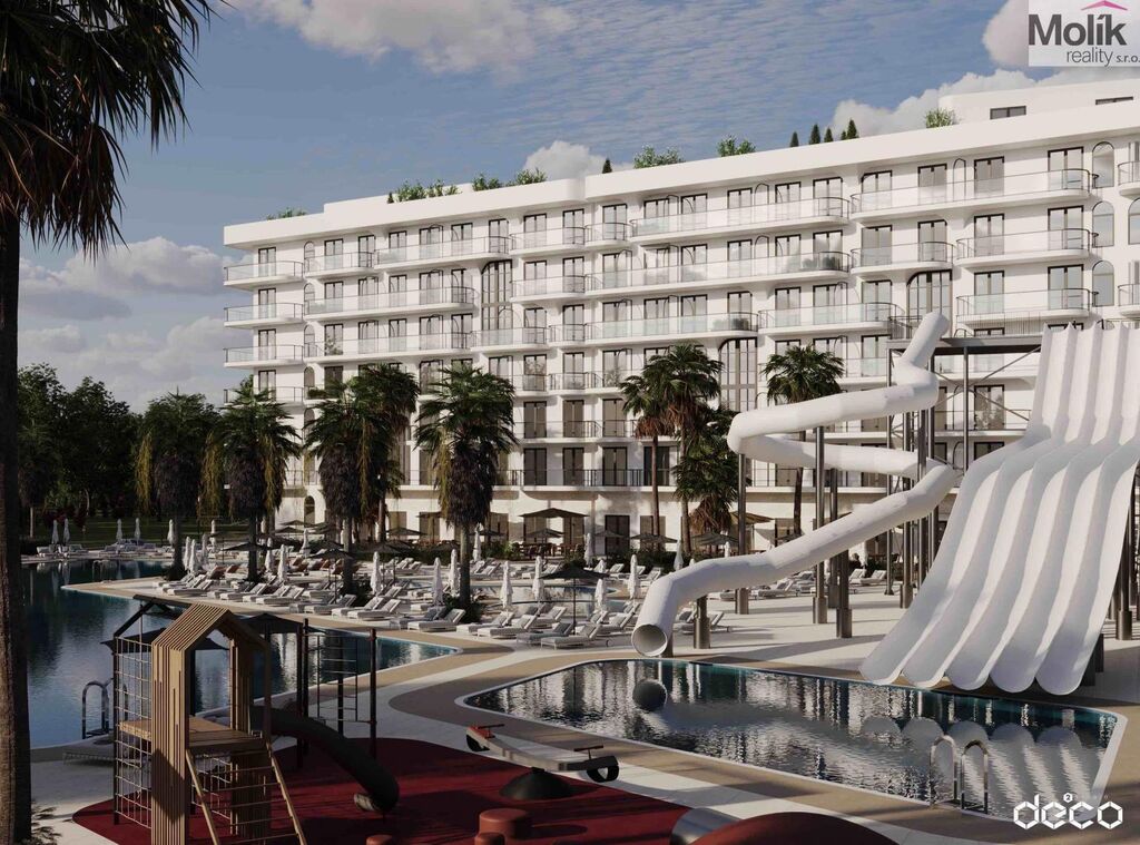 Moderní resortový standard: 5 bazénů, aquapark, hotel, bar a restaurace v rámci komplexu, vše pro váš komfort.