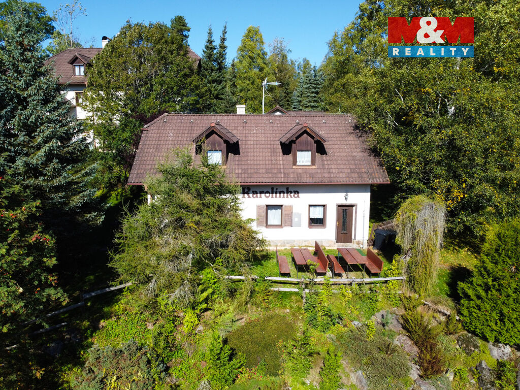 Hledáte klidné útočiště v panenské přírodě Šumavy? Nebo investiční příležitost s možností okamžitého výdělku? Představujeme vám krásný a udržovaný dům „Karolínka“, který nabízí obojí. Nemovitost se nachází v malebné šumavské obci Prášily na hranici 1.zóny NP Šumava jen pár kroků od vyhlášených turistických cílů. Dům nabízí 4 apartmány ve 2 patrech. Ke každému apartmánu náleží vlastní koupelna a společná kuchyňka v chodbě a nemovitost se prodává s kompletním vybavením. Kolaudace proběhla v roce 2002 jako rodinný dům s možností vnitřních úprav podle svých potřeb jak k bydlení, tak k podnikání. Na rozsáhlém, dle územního plánu dále zastavitelném, pozemku najdete krásnou terasu, srub s krbem a 2 průtočná jezírka s udržovanou zahradou. Pro více informací a prohlídku neváhejte zavolat!