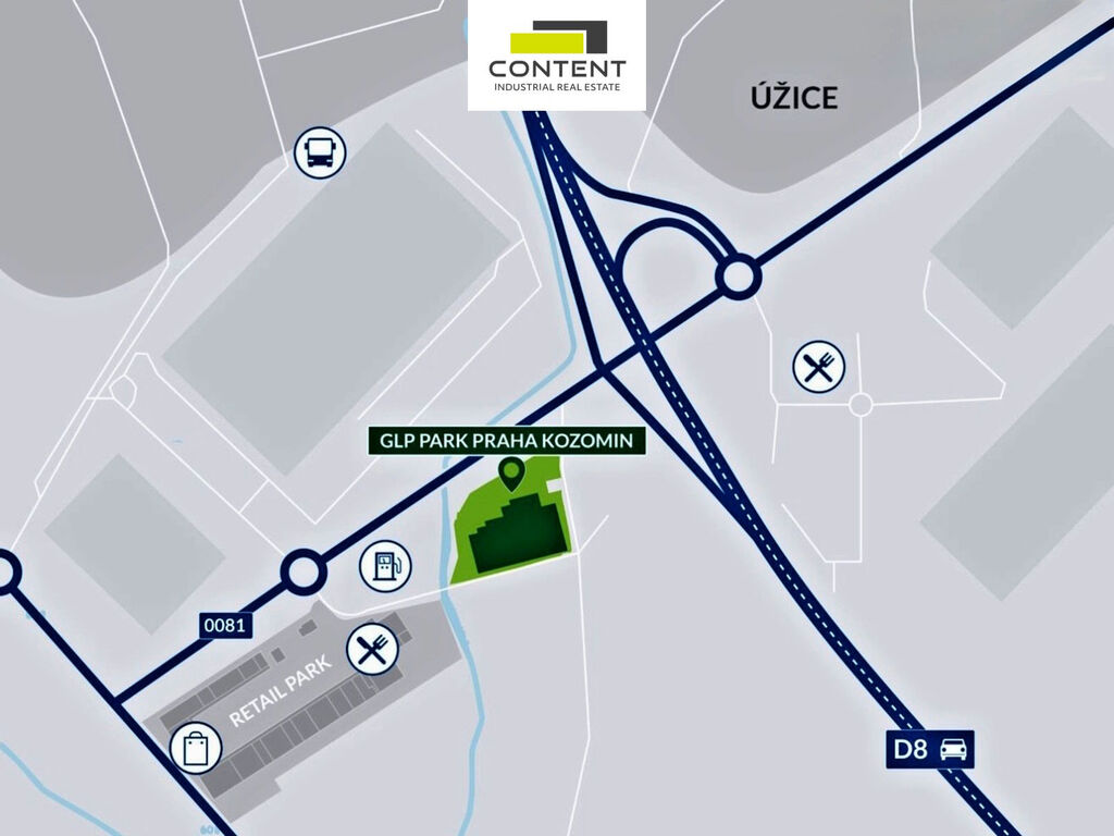 V zastoupení majitele a bez provize nabízíme prostory vhodné pro sklad, velkoobchod nebo výrobu, umístěné přímo u sjezdu z dálnice D8, EXIT 9 Úžice. Novostavba samostatné industriální budovy s celkovou výměrou až 7600 m²: