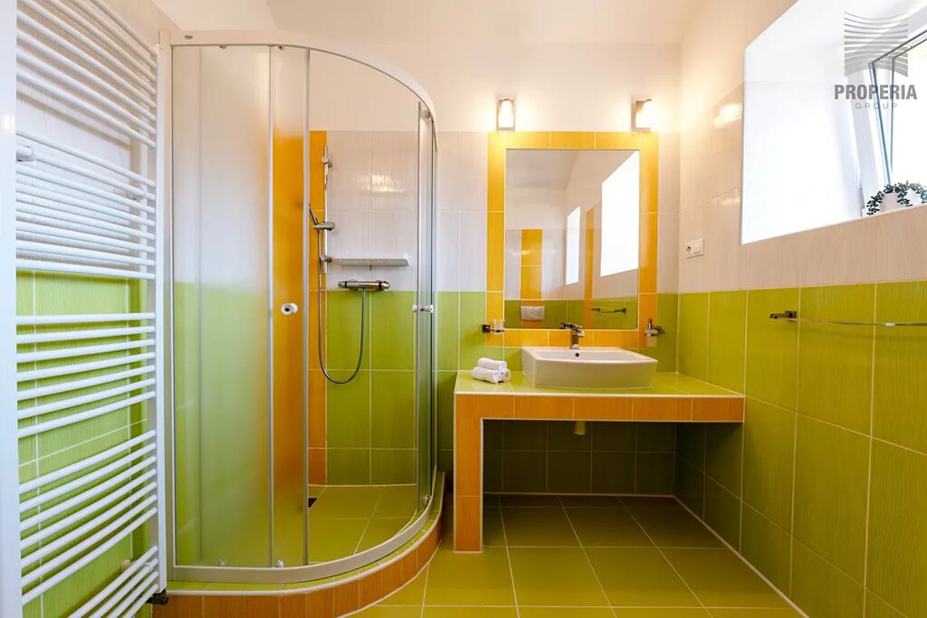 • koupelna s atypickou vanou pro dvě osoby, dvěma umyvadly a místem pro pračku i sušičku