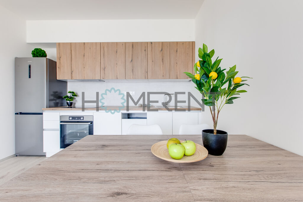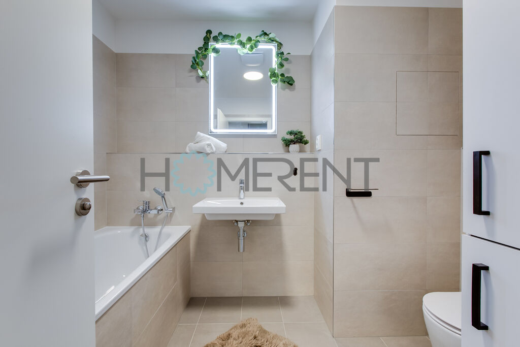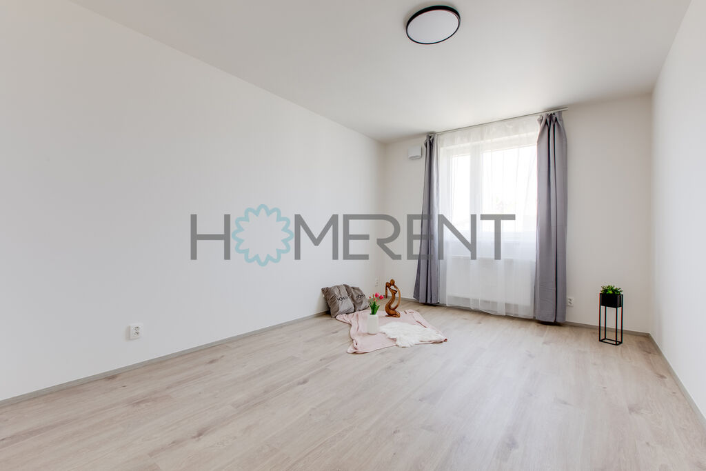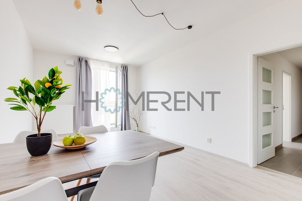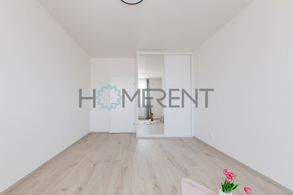Byt je částečně zařízený – moderní kuchyně se spotřebiči, světlý obývací prostor s přístupem na lodžii, ložnice s úložnými prostory, koupelna s vanou a vestavěnou pračkou. Celý byt je krásně prosvětlený a nachází se v příjemném prostředí obklopeném zelení. V bytě ještě nikdo nebydlel.