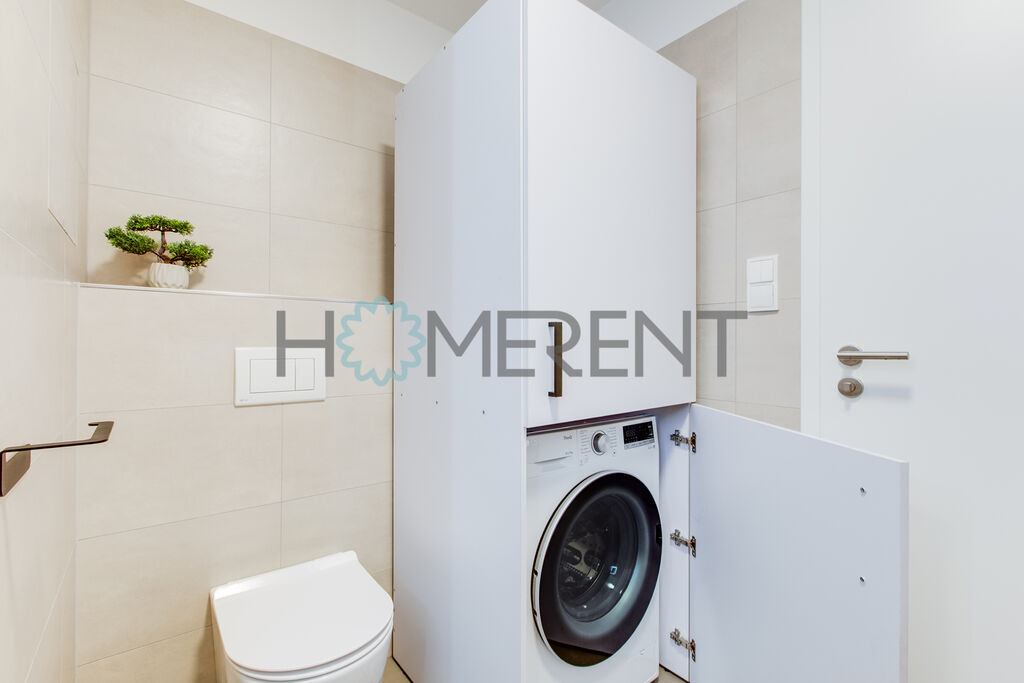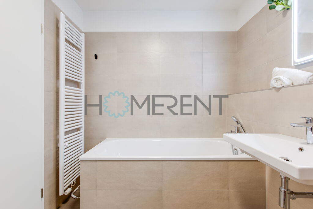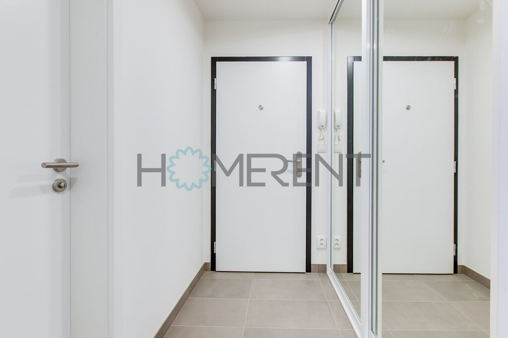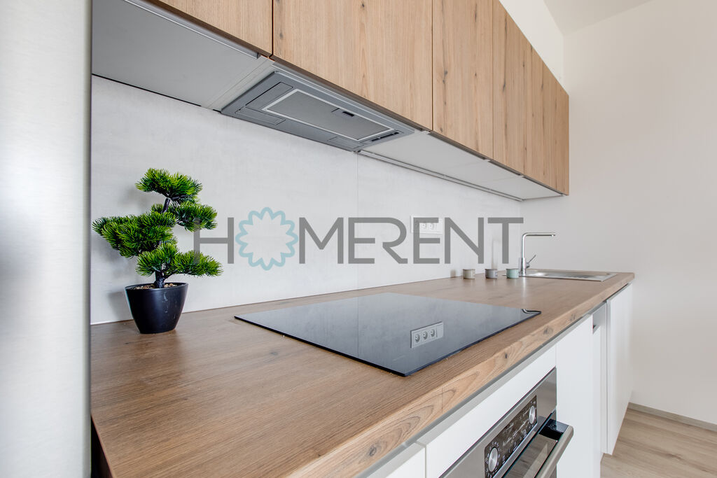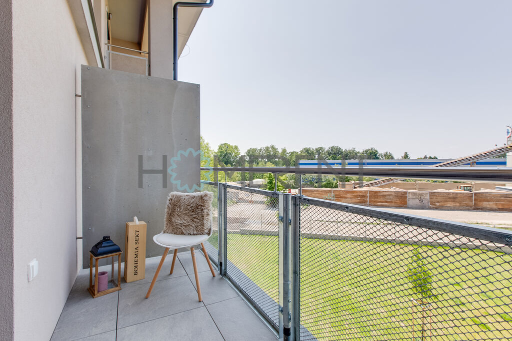 Byt je částečně zařízený – moderní kuchyně se spotřebiči, světlý obývací prostor s přístupem na lodžii, ložnice s úložnými prostory, koupelna s vanou a vestavěnou pračkou. Celý byt je krásně prosvětlený a nachází se v příjemném prostředí obklopeném zelení. V bytě ještě nikdo nebydlel.