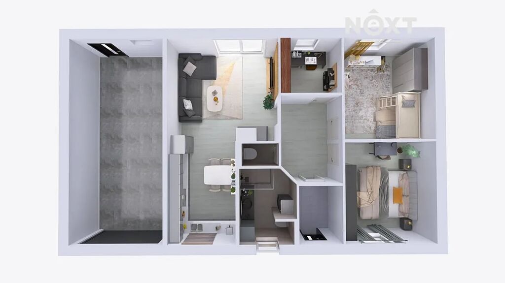 V půdním prostoru je počítáno s vytvořením pochozí podlahy a úložného prostoru po celé délce domu. Může sloužit k uložení sezonního oblečení, sportovního vybavení apod.