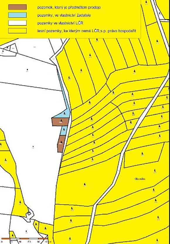 Jedná se o prodej 2 lesních pozemků parc. č. 778/37 o výměře 622 m2 a parc. č. 778/38 o výměře 480 m2 malé výměry, obklopené pozemky jiných vlastníků, a nachází se na nich pouze několik vzrostlých smrků a bříz