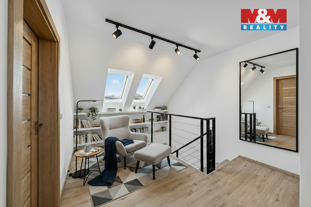 Horní patro tvoří dvě samostatné ložnice, druhá koupelna a galerie, která se hodí pro pracovnu nebo klidovou zónu. Byt je prázdný, připravený k zařízení přesně podle vašich představ. K jednotce patří velký sklep a vlastní parkovací místo přímo před domem.