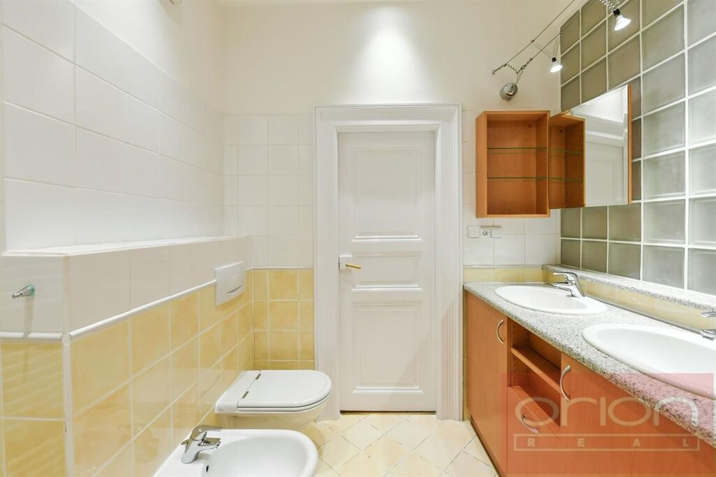 Nabízíme k pronájmu reprezentativní mezonetový byt 3+kk s balkonem v přízemí a v 1. patře zrekonstruovaného cihlového domu s výtahem, přímo v centru Prahy 2 - Vinohrady, v těsné blízkosti parku Riegrovy sady. Byt má celkovou plochu 118 m² a nabízí vstupní chodbu, prostorný obývací pokoj, plně vybavenou kuchyň s jídelnou, 2 koupelny, 2 ložnice. V bytě jsou vysoké stropy, na podlahách parkety a dlažba. Byt je částečně zařízený, možnost zařídit po dohodě. Možnost pronájmu garážového stání za extra 6.500,-Kč/měsíc. Dům se nachází pouze 10 minut chůze od Václavského náměstí, jen pár kroků od Riegrových sadů a stanice metra Náměstí Míru nebo Jiřího z Poděbrad. V lokalitě je skvělá dopravní dostupnost a veškerá občanská vybavenost - školy, školky, úřady, obchody, restaurace, služby, kulturní a sportovní zařízení.