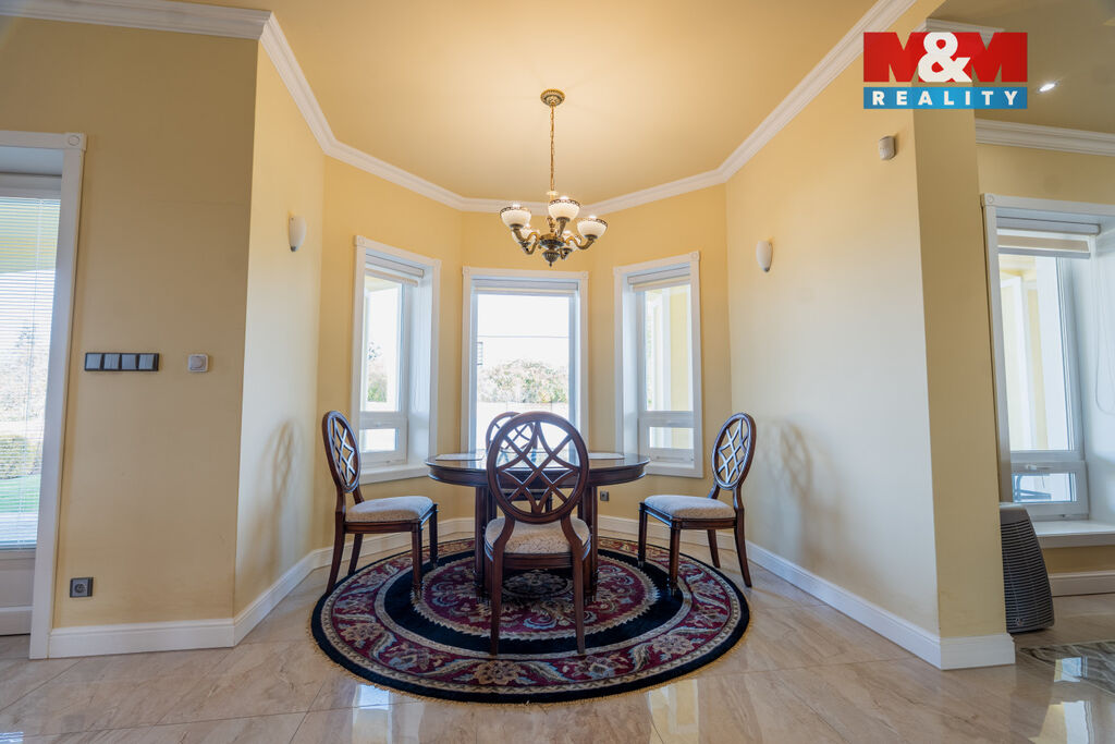 Hledáte dům, který spojuje eleganci, pohodlí a výjimečné místo k životu pouze 40 minut jízdy od Prahy? Tento jedinečný rodinný dům v americkém stylu o dispozici 6+KK s užitnou plochou 429 m² stojí na pozemku o rozloze 1 694 m² v jedné z nejatraktivnější části Loun s dechberoucím výhledem na České středohoří. Dům vás osloví velkorysým prostorem, nadčasovým designem a důrazem na detail. Nabízí tři pokoje pro hosty, každý s vlastní šatnou a koupelnou, obývací pokoj s barem a jídelním koutem, prostornou kuchyň se spíží, pracovnu, samostatné WC a hlavní ložnici s luxusní koupelnou. Na zahradě se můžete vykoupat v bazénu se slanou vodou. Součástí domu jsou dvě garáže, podlahové vytápění, klimatizace, centrální ozvučení a kamerový systém. Přijďte se přesvědčit o výjimečnosti tohoto domu a domluvte si prohlídku, během níž vám představíme vše, co tento domov nabízí.