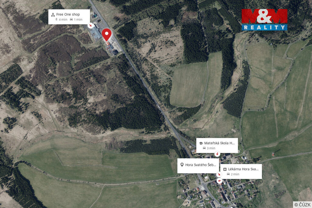 Nabízíme k prodeji atraktivní komerční nemovitost o zastavěné ploše 693 m² za obcí Hora Svatého Šebestiána. U objektu je rozlehlé parkoviště pro osobní automobily, kamiony i autobusy. Jedná se o pozemek o výměře 2 277 m². Obchodní prostory se nachází u frekventované silnice nedaleko hranic s Německem. Lokalita je tedy výhodou pro vysoký výnos. Objekt je momentálně plně obsazen nájemci, což může být výhoda pro nového majitele z hlediska okamžitého a stabilního příjmu. Úsporné je vytápění objektu na tuhá paliva. Odpady jsou řešeny septikem. Lokalita s vysokou průjezdností a blízkost státní hranice činí z této nemovitosti velmi zajímavou investiční příležitost. Pro více informací ohledně měsíční výnosnosti a dalších informacích o objektu neváhejte kontaktovat makléře!