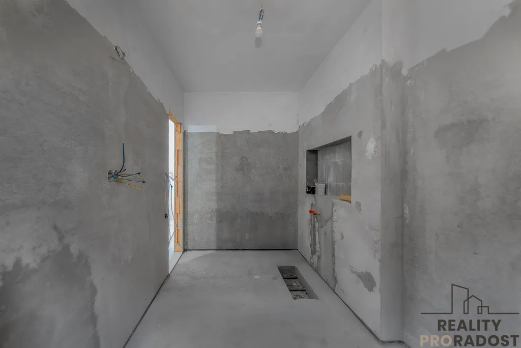 Dům je napojen na vlastní studnu a k dispozici je i druhá, užitková, například na zalévání. Odpad je sveden do nepropustné jímky. Elektřina je 220 i 380 V. Okna i dveře jsou plastová s trojskly. Vše do prádelny je již připraveno. Pro lepší představu o dokončení mám připravené vizualizace i kalkulace nákladů a mezi fotografiemi najdete i dvě návrhové vizualizace.