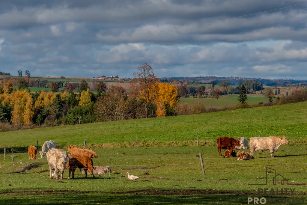 Součástí prodeje je také pole za domem o celkové ploše 12 150 m². Můžete jej využít pro sebe nebo propachtovat. Celková výměra všech pozemků je 16 331 m², z toho pozemky přímo u domu mají