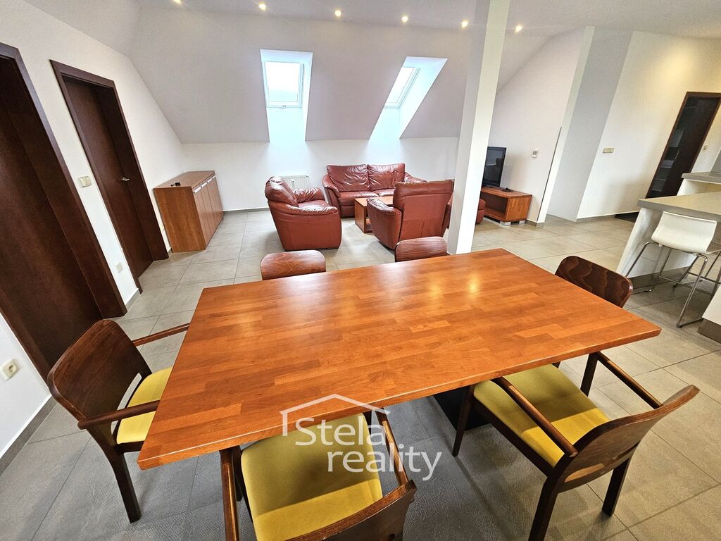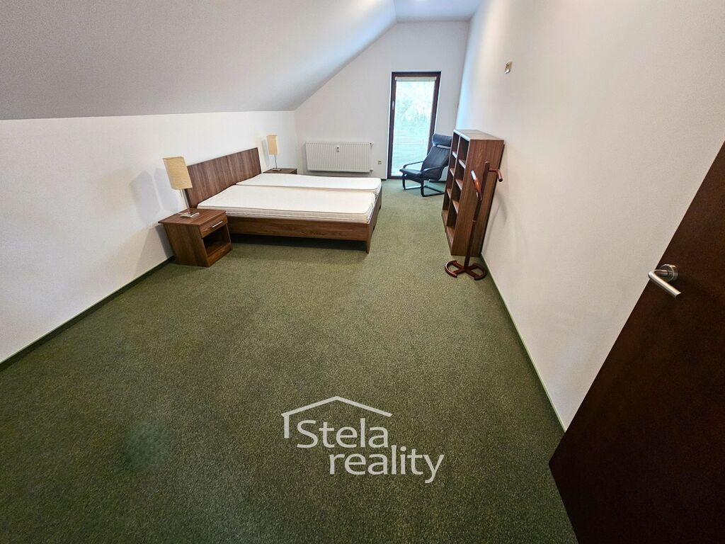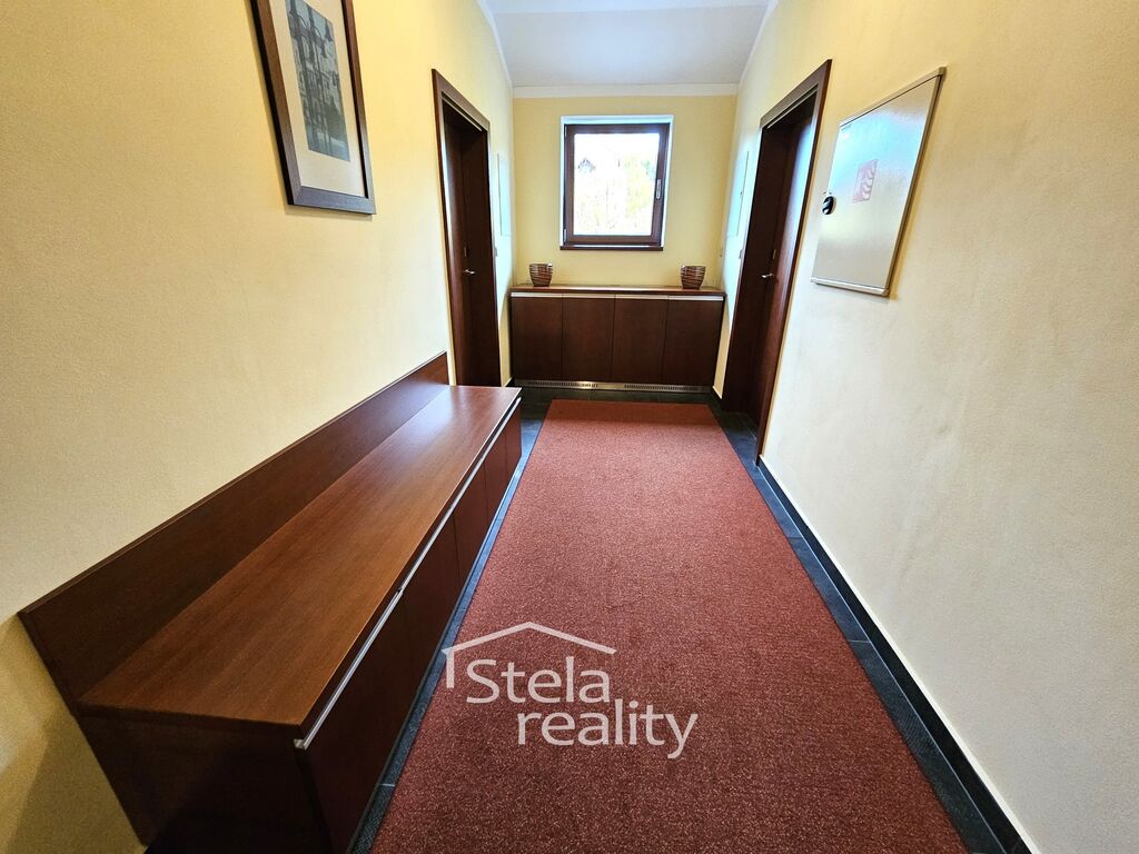 Nabízíme k pronájmu zařízený byt o dispozici 4+kk, 160 m2, v budově hotelu Hermes, Ježník, Krnov, 1 p./1p. Byt je po celkové rekonstrukci - plastová okna, venkovní žaluzie, na podlahách koberce a keramická dlažba, kuchyňská linka včetně spotřebičů (trouba, indukční varná deska, myčka, digestoř a lednice), interiérové dveře i zárubně, sádrokartonové podhledy s osvětlením, pochozí soumraková světla, prostorná koupelna disponuje vanou i sprchovým koutem. Byt se pronajímá zařízený - nábytek z masivu - jídelní stůl, židle, komody, konferenční stůl, stolek pod televizi, 2x dvoulůžková postel, šatní skříně, noční stolky, křesla, kožená polohovací sedací souprava, botníky, 2 x televize, pračka a sušička. Součástí bytu je šatna a dvě chodby. K dispozici je jedno parkovací místo v areálu hotelu. Nájem činí 20.000,- Kč, služby (elektřina, topení, teplá i studená voda, satelitní televize, WiFi) jsou max. ve výši 5.000 Kč. Klidné prostředí s krásným výhledem. Možnost dlouhodobého pronájmu. Požadována vratná kauce (jistota). Volný ihned. Makléř doporučuje prohlídku!