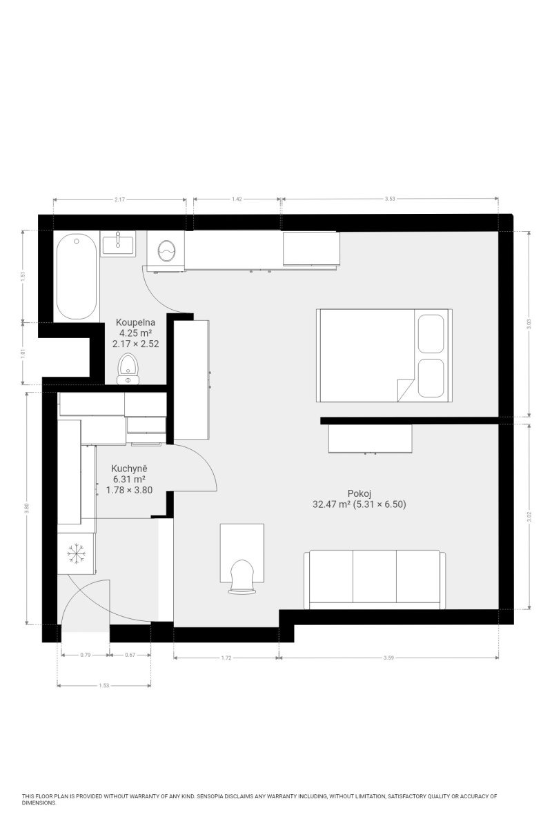 Jedná se o zařízený byt. V kuchyni naleznete kuchyňskou linku s varnou deskou, troubou a vestavnou lednicí. Obývací část je vybavena kompletně nábytkem. Najdeme zde skříně, komody, sedací soupravu, postel a spoustu úložného prostoru.