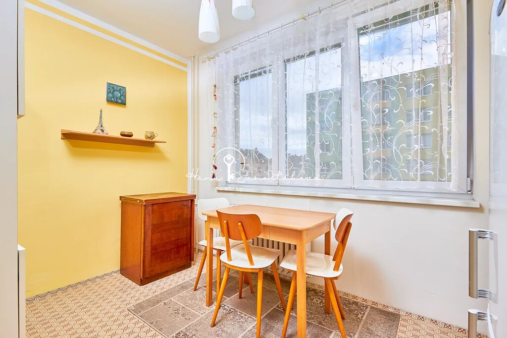 Dispozice bytu je 2+1. Kuchyně je orientována na západ a ložnice s obývacím pokojem jsou orientovány na východ. K bytu náleží sklep.