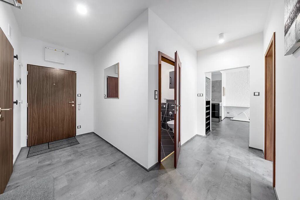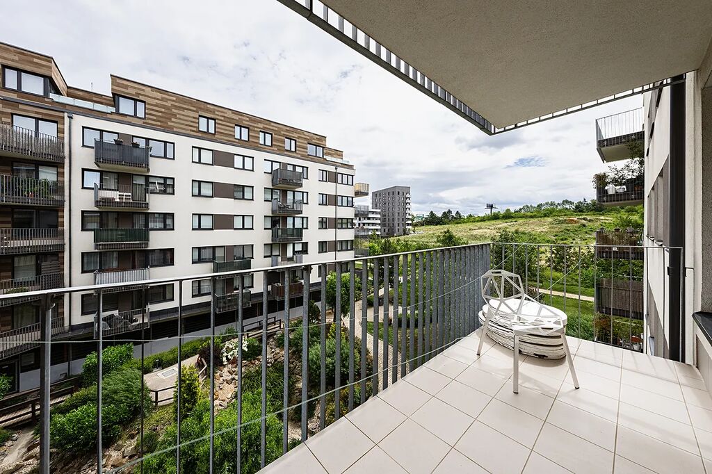 Balkon je propojený s obývacím pokojem a je skvělým místem pro relaxaci s výhledem do okolí. Příjemná a klidná lokalita vedle přírodní rezervaci Prokopské údolí. V okolí domu je kompletní občanská vybavenost, dobrá dopravní dostupnost, aquapark Aquadream, lékárna, pošta, bankomat, restaurace, v nejbližším okolí základní a střední školy, supermarket Albert, sportovní centrum. Rychlé wifi připojení k internetu a parkovací stání jsou již zahrnuty v ceně nájmu.