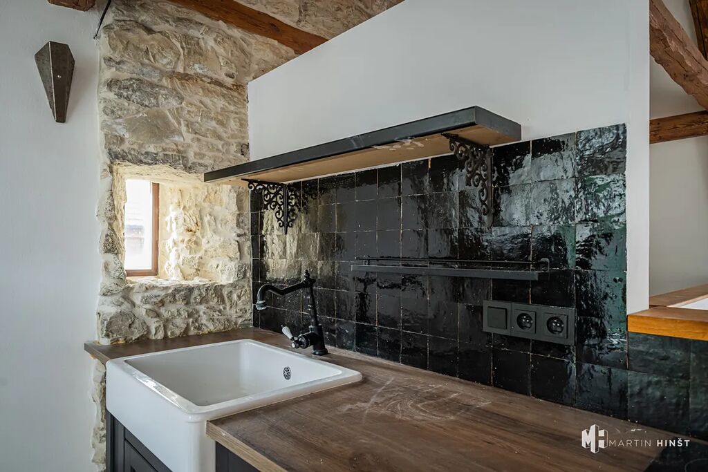 Budovy jsou postaveny z kvádrového opukového zdiva, typického pro tuto oblast. Fasády panského sídla a ostatních budov byly plně zachovány stejně jako dřevěné trámy a krovy v podkroví, které zůstaly odkryté. Do podkrovních prostor byla vybudována nová vikýřová okna pro maximální přísun přírodního světla. K nim byly vybrány moderní materiály, jako dřevěné podlahy, přírodní kámen, keramické dlažby a skleněná mozaika.