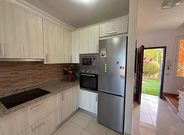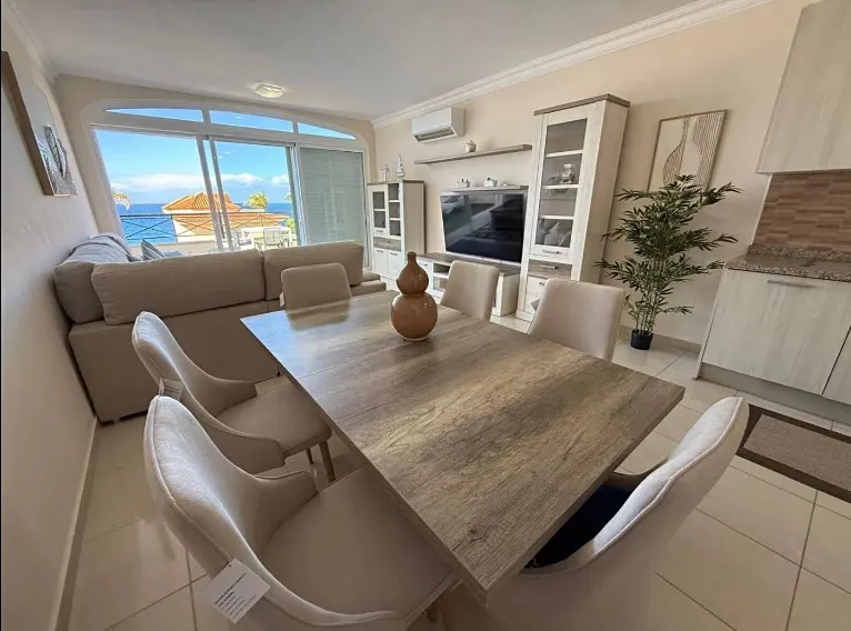 Stylové bydlení s výhledem na oceán. Nabízíme vám jedinečnou příležitost k bydlení v srdci Los Cristianos, jen pár kroků od moře. Tento elegantní řadový dům se nachází v prestižní rezidenční komunitě a nabízí ideální spojení pohodlí, prostoru a výjimečné polohy. V klidné uzavřené komunitě s bazénem si můžete užívat soukromí, odpočinek a příjemnou sousedskou atmosféru. Objevte kouzlo přímořského života v jedné z nejžádanějších oblastí jižního Tenerife. Dispozice domu: přízemí - uzavřená soukromá garáž s přímým vstupem do interiéru, technická místnost a plně vybavená koupelna. 1. patro - prostorný obývací pokoj s jídelnou, propojený s moderní kuchyní. Velká terasa s nádherným výhledem na moře a další kompletní koupelna. 2. patro - dvě dvoulůžkové ložnice, každá s vlastním balkonem, a pohodlná koupelna. 3. patro - privátní apartmá s ložnicí, koupelnou a balkonem orientovaným k oceánu. Přibližně 150 m² zastavěné plochy a 140 m² užitné plochy, 3 ložnice, 3 koupelny, jižní orientace, vestavěné skříně, úložné prostory, klimatizace, výborný technický stav – dům je připraven k okamžitému nastěhování. Ideální pro trvalé bydlení, rekreační dům nebo investice k pronájmu