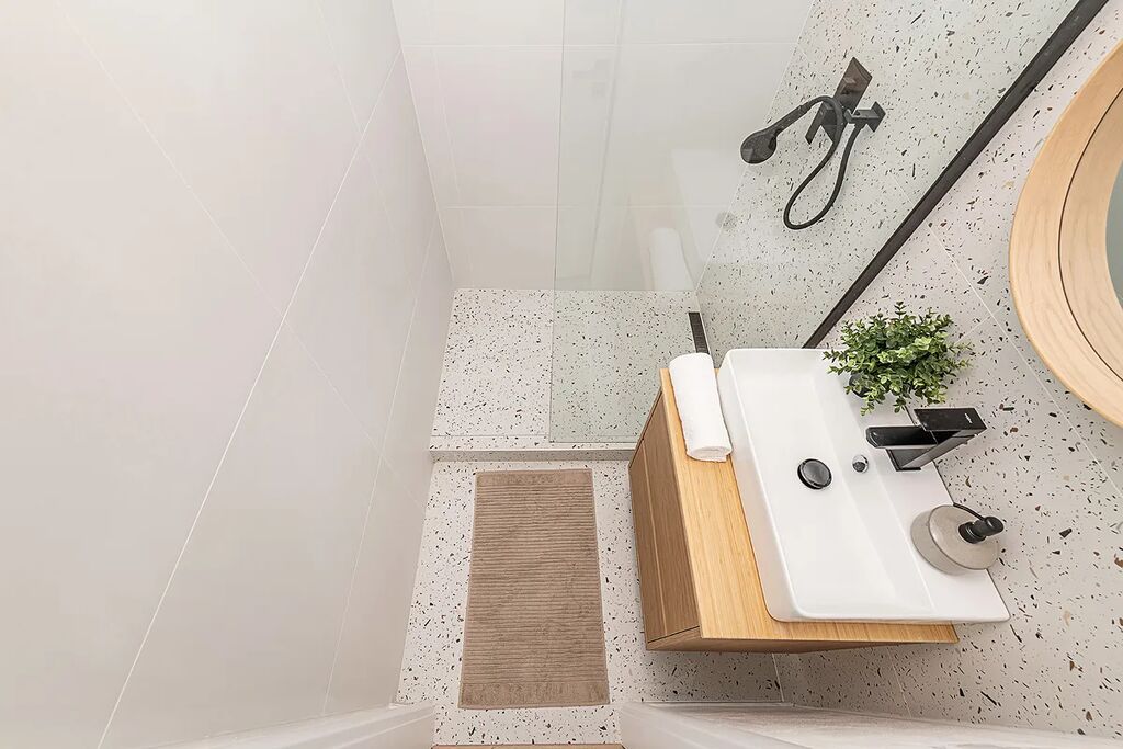 Dispozici bytu tvoří dvě neprůchozí ložnice, velkorysý obývací pokoj spojený s kuchyní, prostorná koupelna se sprchovým koutem, samostatný záchod a uzamykatelná šatna/technická místnost.