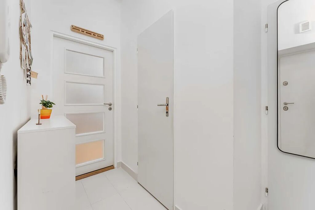 Nabízíme moderní byt 2+kk po rekonstrukci o celkové výměře cca 46 m² (včetně sklepa 1,5 m2 a balkonu 3,5 m2). Byt se nachází ve 4. patře cihlového domu na Mojmírově náměstí. Je velmi dobře dispozičně řešený, prosvětlený obývací pokoj s kuchyňským koutem a balkónem nabízí krásný
