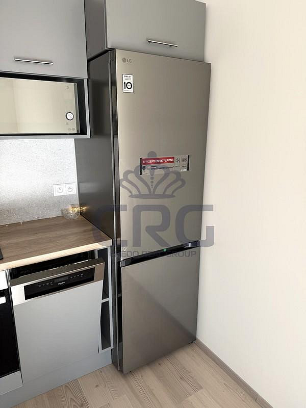 Bezpečnostními vstupními dveřmi vejdeme do prostorné chodby o výměře cca 7,1 m². Z této vedou samostatné vstupy do ostatních místností v bytě. V bytě je jedna ložnice s velkým francouzským oknem o výměře cca 12,7 m². Koupelna o výměře cca 4,3 m² je prostorná. Nalezneme zde umyvadlo, sprchový kout, WC a pračku se sušičkou značky Whirlpool. Obývací pokoj s kuchyňským koutem o výměře cca 18,7 m² je vybaven luxusní kuchyňskou linkou s vestavnými spotřebiči, jako je pečící trouba značky Whirlpool, myčka nádobí značky Whirlpool, mikrovlnná trouba značky LG, indukční varná deska značky Whirlpool, chladnička s mrazničkou značky LG a digestoř značky Whirlpool. Kuchyně poskytuje maximum úložného prostoru. Dominantou této místnosti je balkón o výměře cca 4,7 m² s výhledem do okolí.