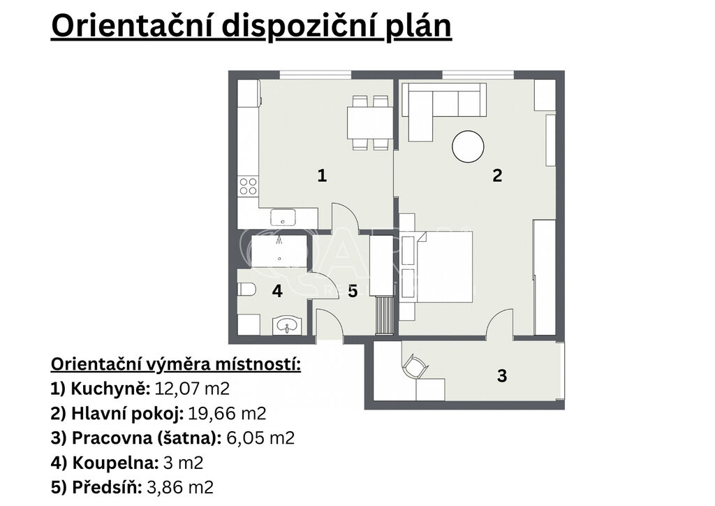 K pronájmu Vám nabízíme tento světlý byt o příjemné dispozici 1+1 + pracovna (šatna).