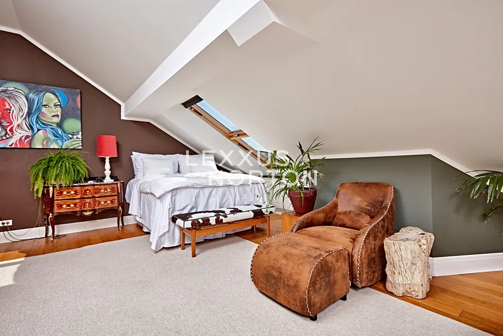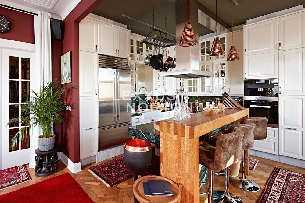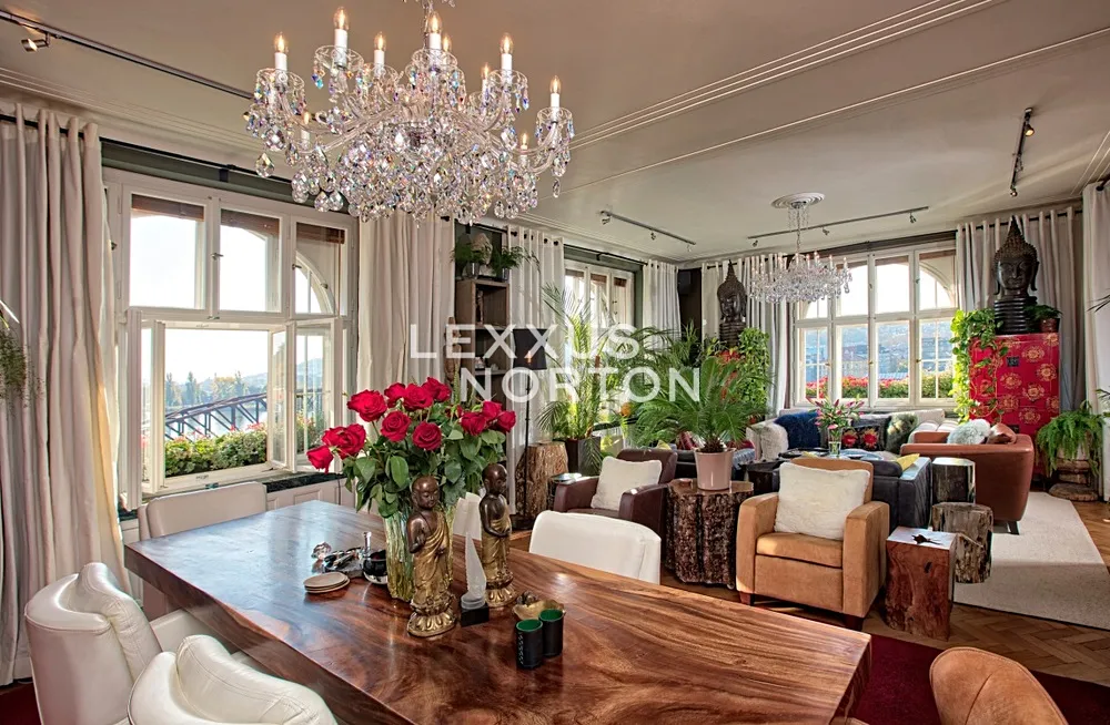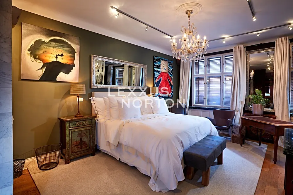 Luxusní reprezentativní bydlení v blízkosti zeleně, s veškerou občanskou vybaveností a výbornou dopravní infrastrukturou. To vše a mnohem víc nabízí tento impozantně zařízený mezonetový byt 5+kk k pronájmu na Novém Městě. Impozantní interiér navržený s citem pro umění a detail tohoto exkluzivního zařízeného bytu 5+kk k pronájmu o velikosti 600 m2, se nachází ve čtvrtém patře budovy.