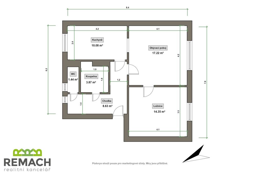 (+ zálohy na služby ve výši 485 Kč, elektřinu a plyn si přepisuje nájemce na sebe)
