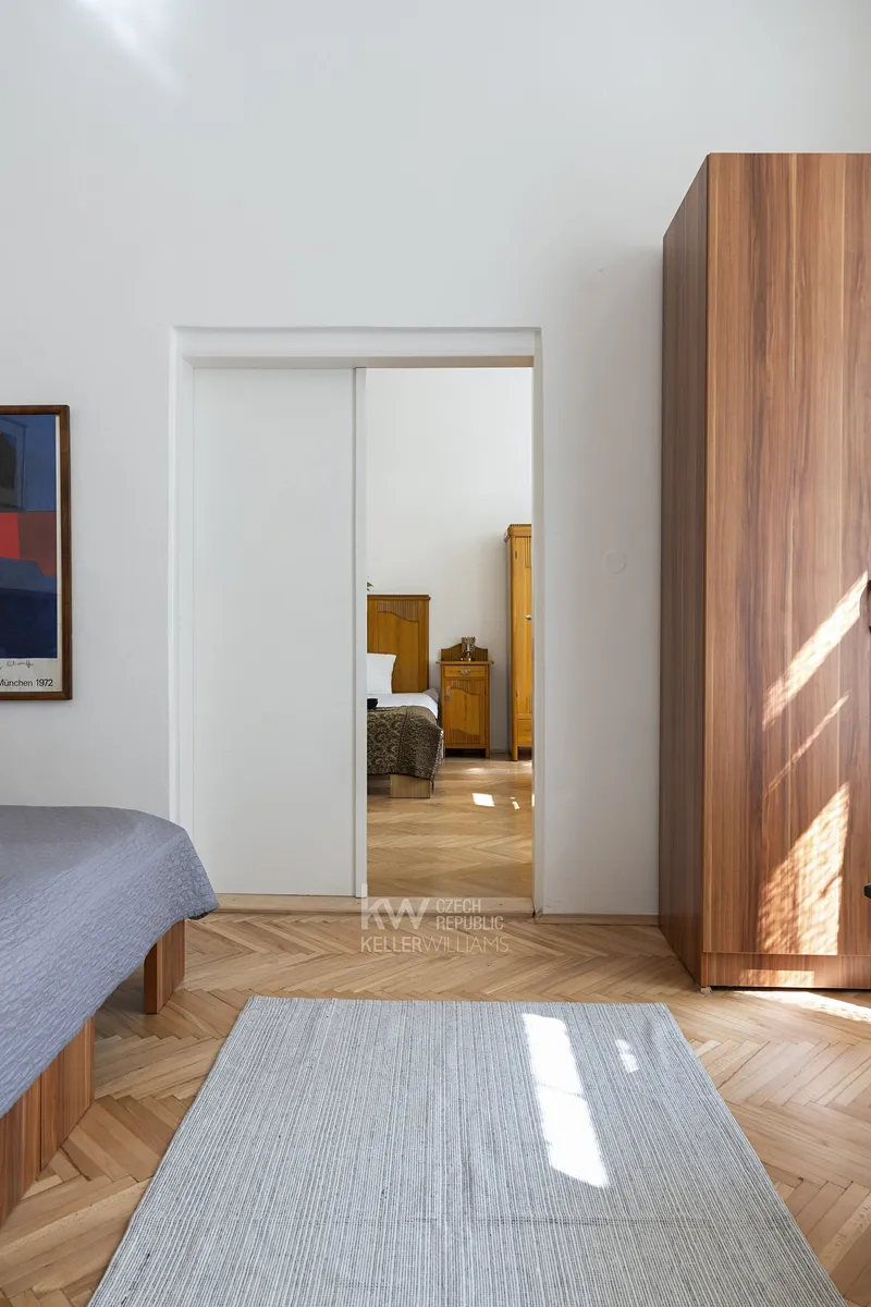 - Dva oddělené, velké a světlé pokoje s výhledem do tichého vnitrobloku – ideální pro spolubydlení, rodinu nebo kombinaci ložnice a obývacího pokoje
