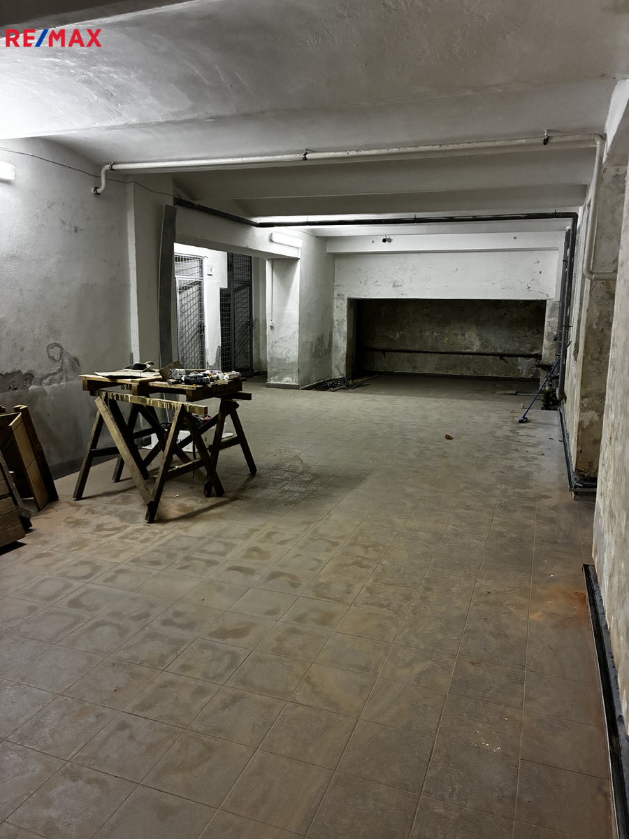 Má zavedenu elektřinu, vodu a vývod na odpadní vodu. Přístup je zajištěn přes hlavní vstup do domu. Díky své velikosti a technickému zázemí je vhodný pro skladování, dílnu, provozovnu či jiné nebytové využití.