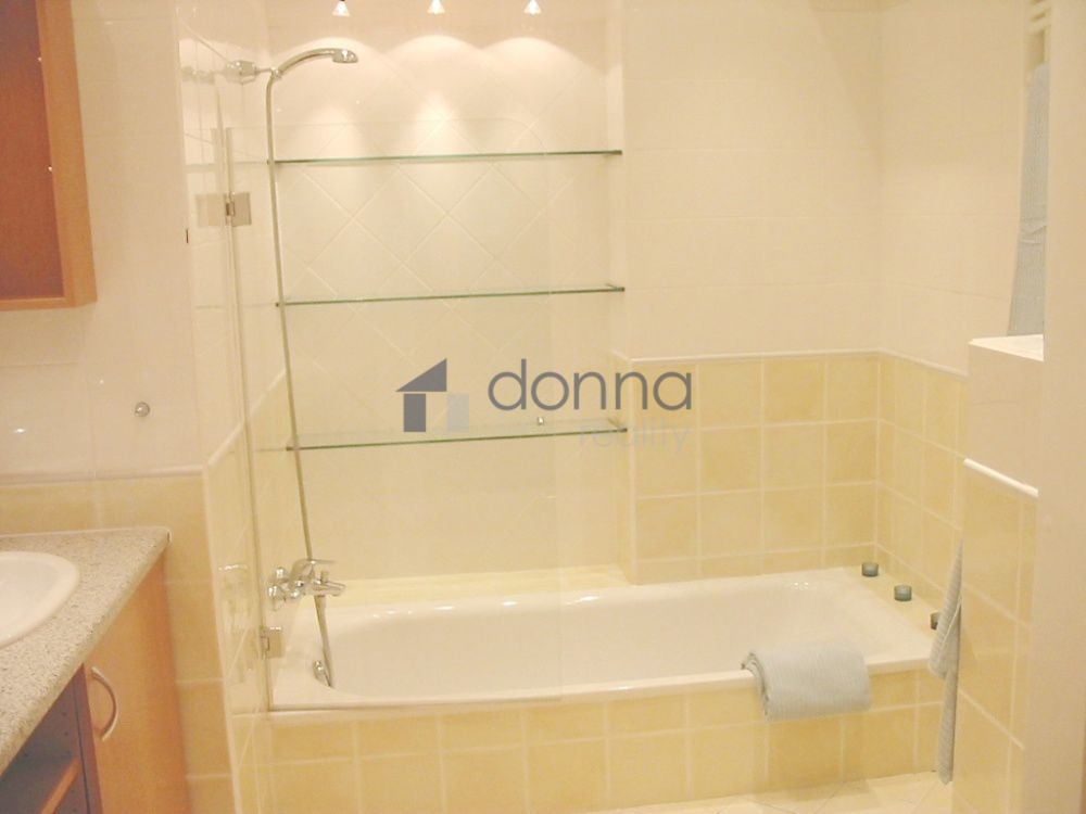Byt je vybavený novou kuchyňskou linkou se spotřebiči - pračka se sušičkou, myčka, americká lednice, sedací souprava, jídelní stůl + židle - možnost dozařídit, 2 koupelny, na podlaze parkety a dlažba, satelitní a internetová přípojka.