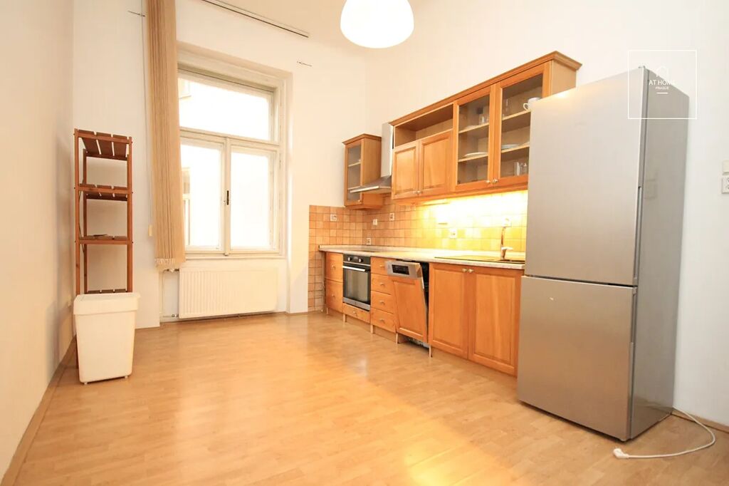 Hezký, nezařízený byt 2+1 v prvním patře udržovaného klasického činžovního domu na Vinohradech, Praha 2 - Vinohrady, jeden blok od parku Grébovka. 71m2: předsíň, obývací pokoj, ložnice - propojeny dvoukřídlými dveřmi, ale každá místnost má i svůj vlastní vstup z předsíně. Samostatně kuchyně plně vybavená spotřebiči. Koupelna s pračkou a sprchovým koutem. Toaleta je samostatně. Komora. Bezpečnostní dveře, bojler na ohřev vody, topení centrální v domě, možnost využití optického kabelu. Oblíbený park Grébovka je za rohem. Dům se nachází v klidné části Vinohrad, nicméně 5 minut pěšky na tramvaj, případně kousek na metro A Náměstí Míru. Poplatky za služby v domě 3.000,-Kč(včetně topení) první osoba/měsíc + 700,-Kč/měs každá další osoba + spotřeba elektřiny v bytě.