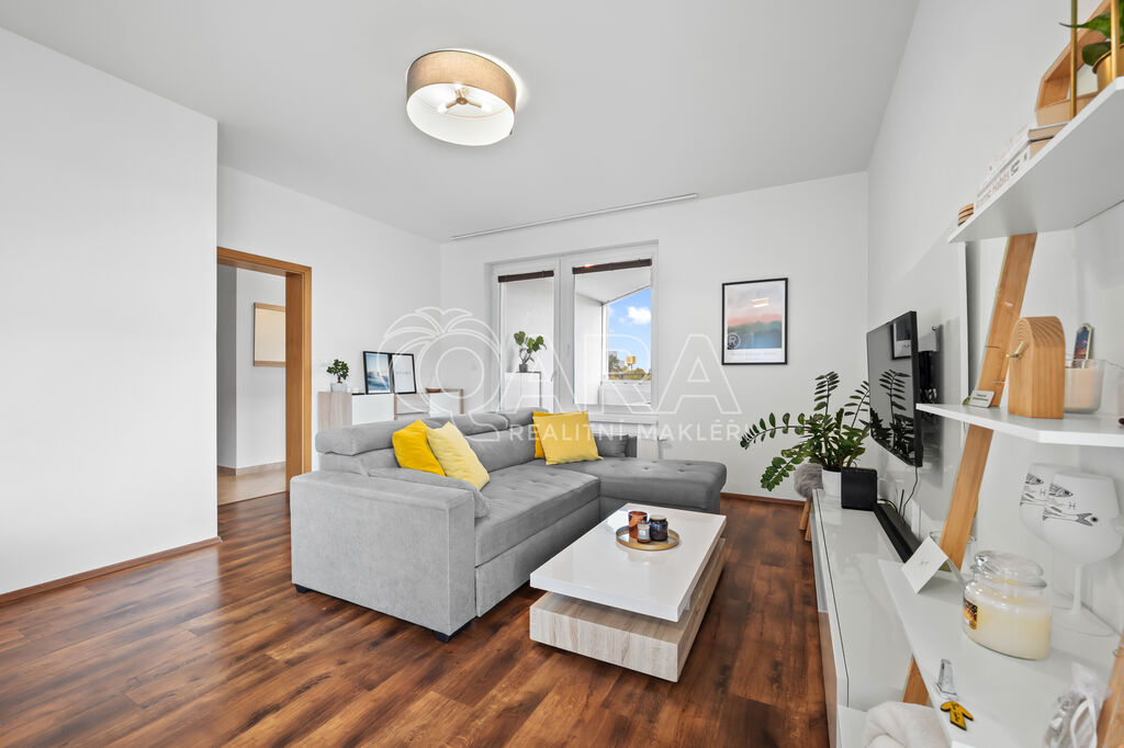 Byt se nachází ve 3. nadzemním podlaží velmi dobře udržovaného domu se dvěma výtahy. Obě lodžie jsou navíc zasklené a umožňují tak jejich celoroční využití – třeba jako domácí kancelář, relaxační zónu nebo posilovnu. Samozřejmostí je kuchyňská linka se spotřebiči, vestavěné skříně a také praktická komora.